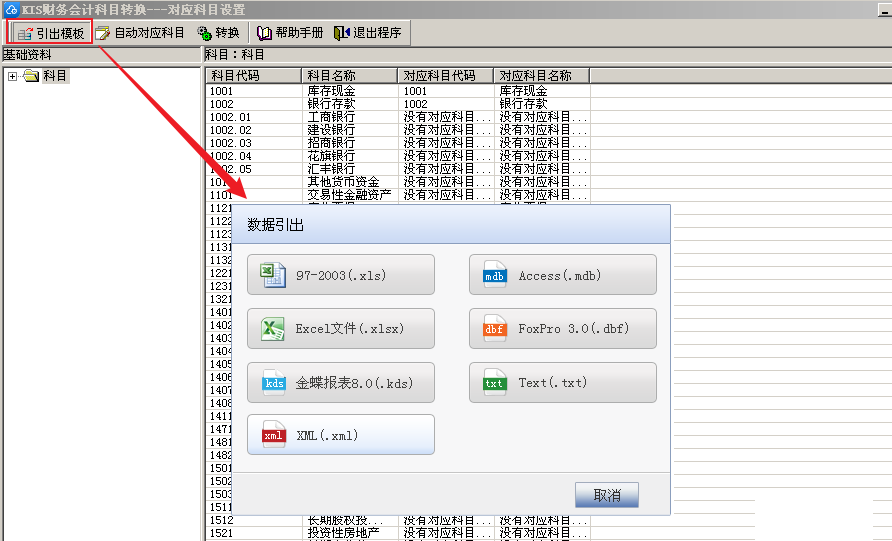 科目对应关系可以引出