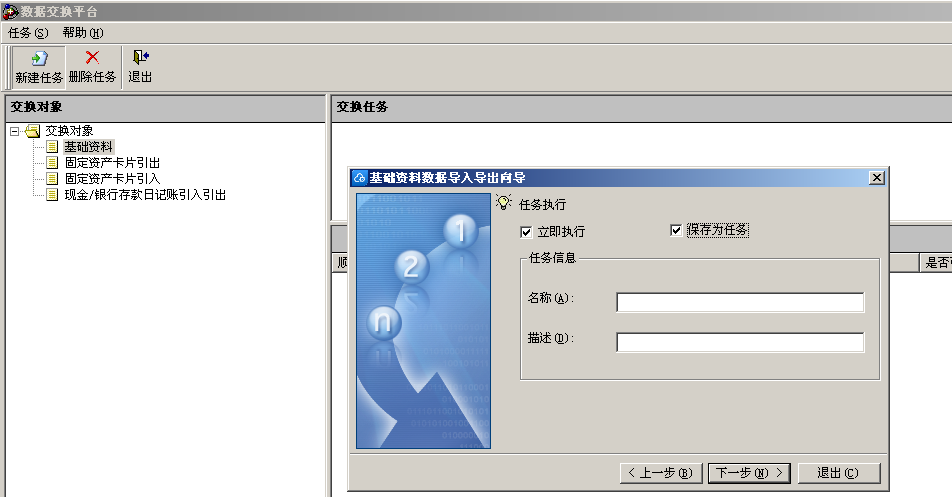 【保存为任务】:选择该项则把前面的所有配置信息保存为基础资料交换任务。