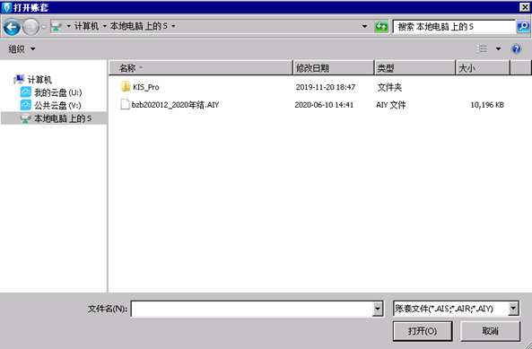 将需要升级/恢复的账套文件(包括年结账套)拷贝至S盘,升级/恢复文件支持格式:AIS/AIR/AIY。