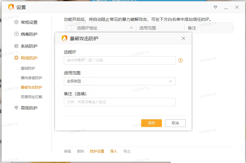 1、打开火绒杀毒软件,设置--网络防护--爆破攻击防护,设置成【仅记录】;