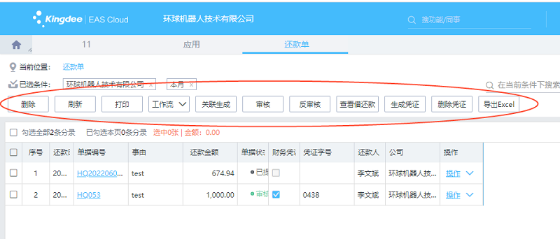 还款单的其它操作包括两大类,一类是在序时簿上,另一类是在单据上。