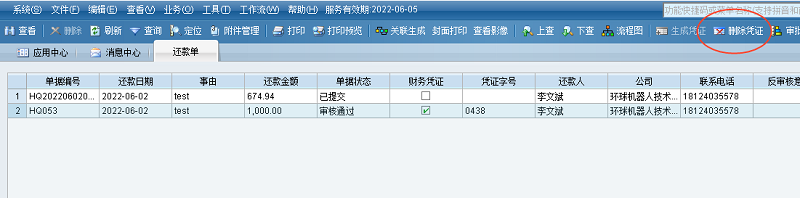 还款单删除凭证