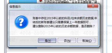 账套中存在某某年以前的科目/往来余额历史数据,年结后的新账套建议只需要保留上一年数据即可,建议删除某某年以前的历史余额数据,是否?