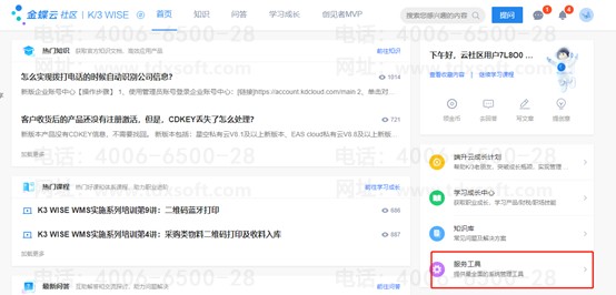 第一步:进入金蝶社区,提交流程的手机号可以是非管理员账号。