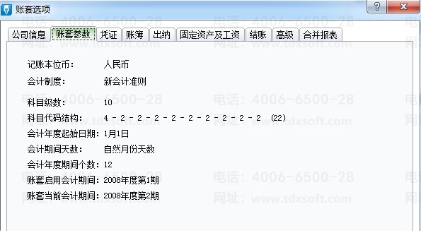 单击[系统维护]-[账套选项]-[账套参数]-[会计制度]查询。