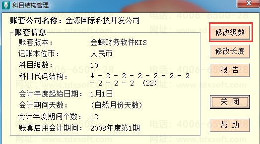 金蝶标准/迷你版是否可以修改科目代码级数?