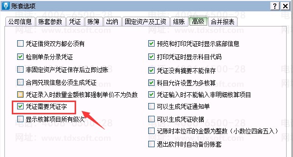 单击[系统维护]-[账套参数]-[高级],勾选参数“凭证需要凭证字”即可。