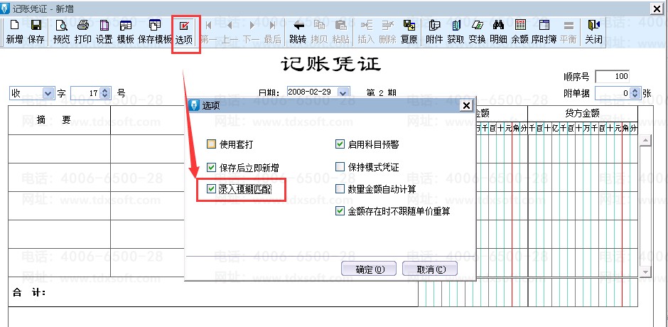 进入[凭证录入]-[选项],勾选参数“录入模糊匹配”,后续凭证录入就可以进行模糊匹配。