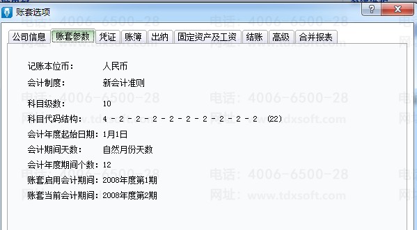 单击[系统维护]—[账套选项]-[账套参数]-[账套启用会计期间]查询。