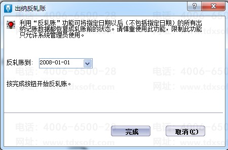 2、在打开的[出纳反轧账]界面,将“反轧账到”后面的日期选择为本会计期期初;如图所示: