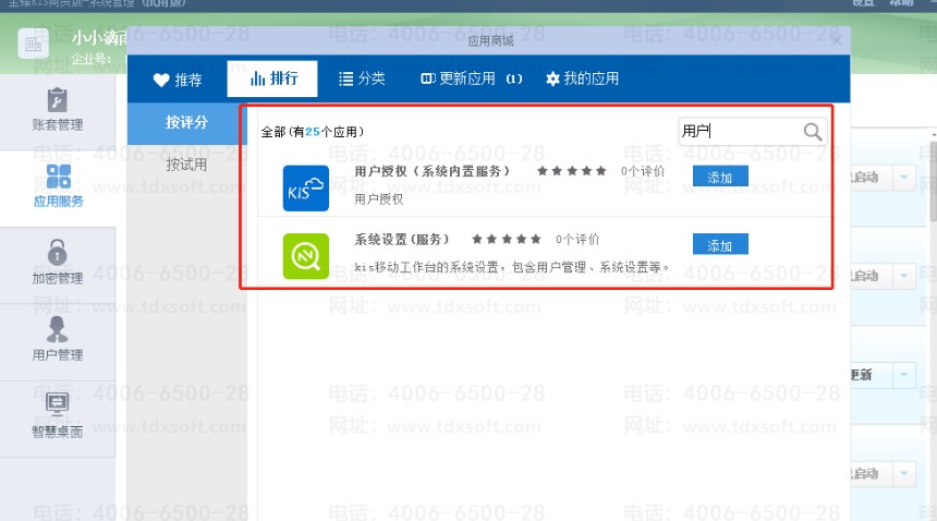 金蝶商贸移动应用登录提示请求的应用服务未添加或未启动