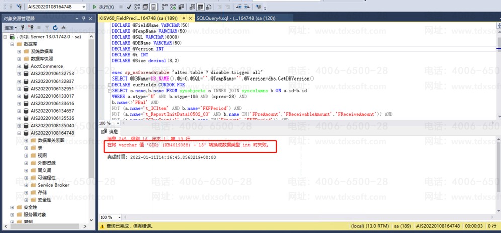 金蝶商贸版建账提示执行脚本错误,kisv60_fieldprecision.sql出错