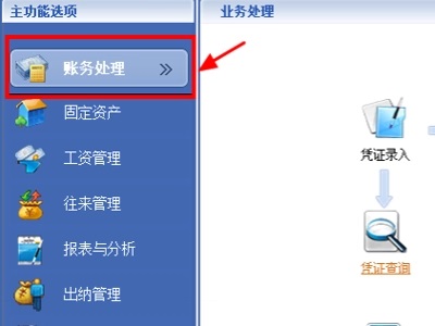 1、在KIS的会计之家主界面,选择“账务处理”,如图所示。
