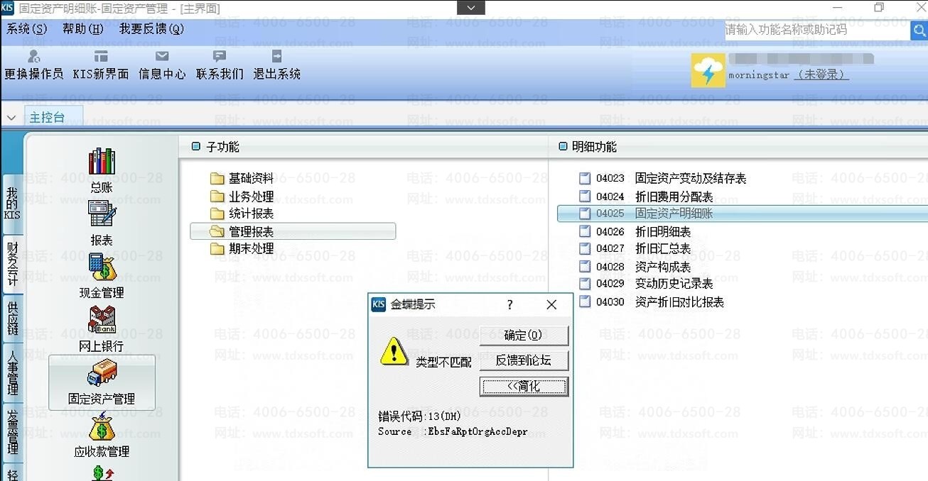 K3迁移到KIS云旗舰版打开固定资产明细账提示“类型不匹配”解决方案