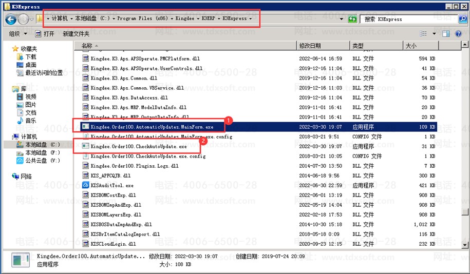 1. 服务器和客户端电脑的安装目录(:\Program Files (x86)\Kingdee\K3ERP\K3Express)的组件(Kingdee.Order100.AutomaticUpdates.MainForm.exe、Kingdee.Order100.CheckAutoUpdate.exe)删除或者改名