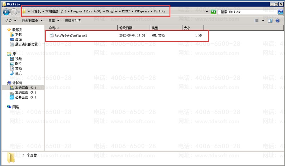 2. 服务器和客户端电脑的安装目录(:\Program Files (x86)\Kingdee\K3ERP\K3Express\Utility)下的这个组件(AutoUpdateConfig.xml)改名或者删除