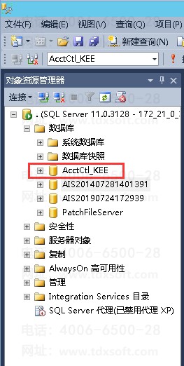 2、使用SQL工具删除【AcctCtl_KEE】数据库;