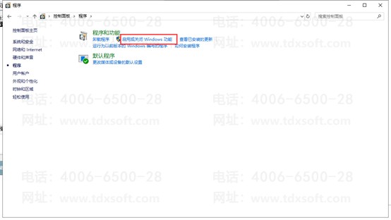 2、 Win10操作系统设备与打印机中如果没有找到,可以通过控制面板-程序和功能启用该功能