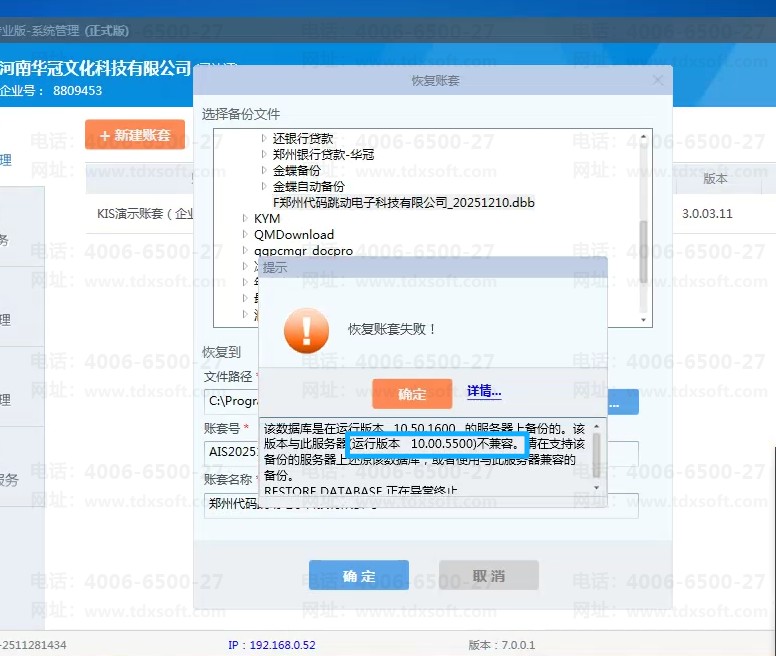 kis专业版恢复账套提示这个,怎么处理,安装了sql2008r,但是实体没有取到这个安装的,是不是专业版默认数据库导致的
