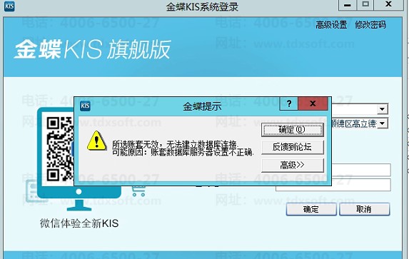 金蝶旗舰版登录提示所选账套无效,无法建立数据库连接
