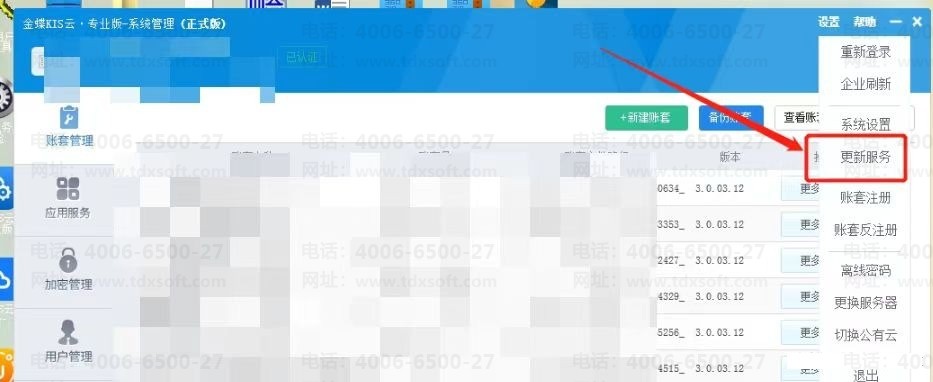 到金蝶软件系统管理-选择更新服务,打开并执行。