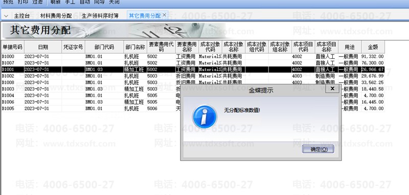 金蝶旗舰版费用分配的时候,有一个车间提示无分配标准值,请问怎么解决?